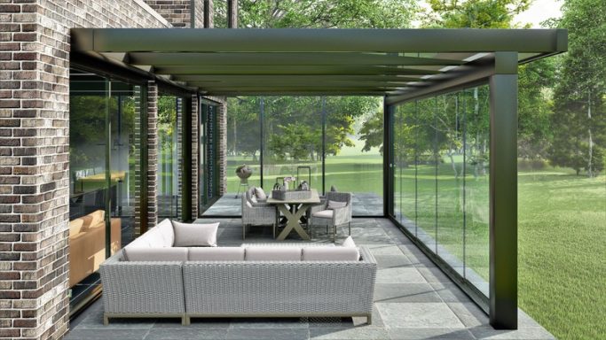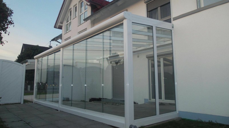 Schieben Sie die Glaselemente bei Bedarf einfach zu — und genießen Sie Ihre Terrasse auch bei ungemütlichem Wetter.